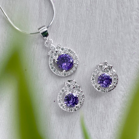 Sold outMystic Purple Round Halo Stud