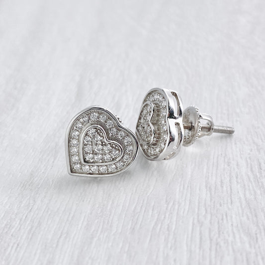 Two Row Iced Heart Studs